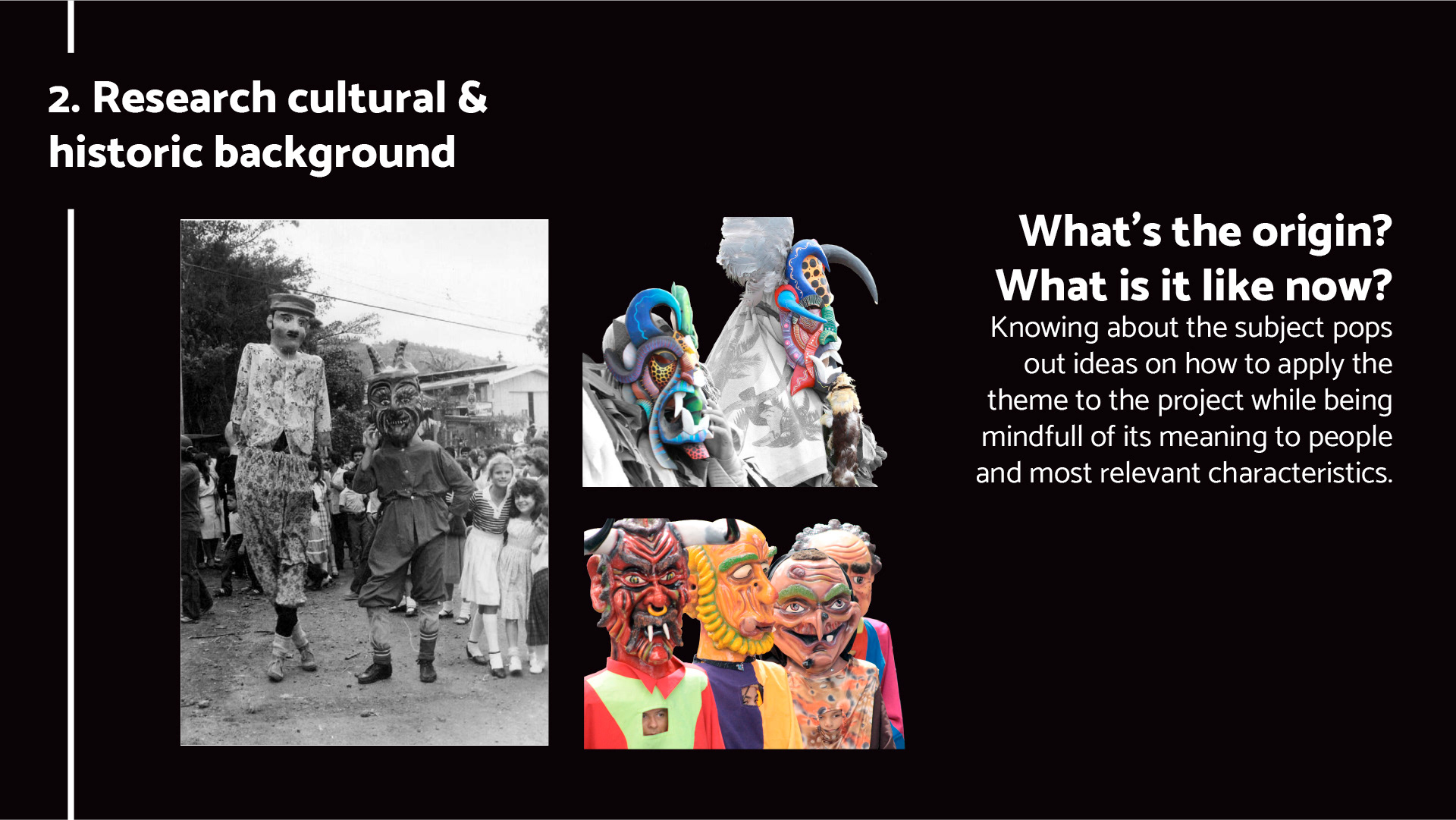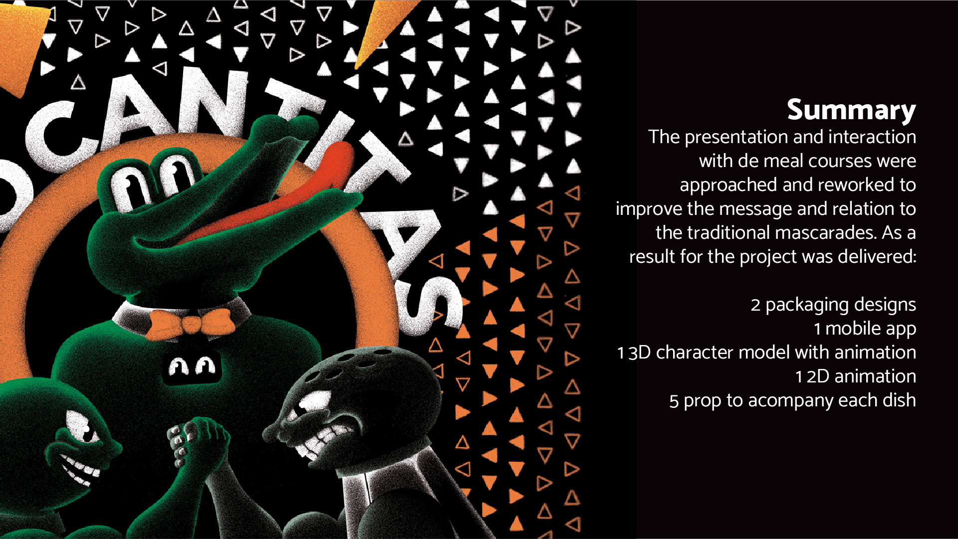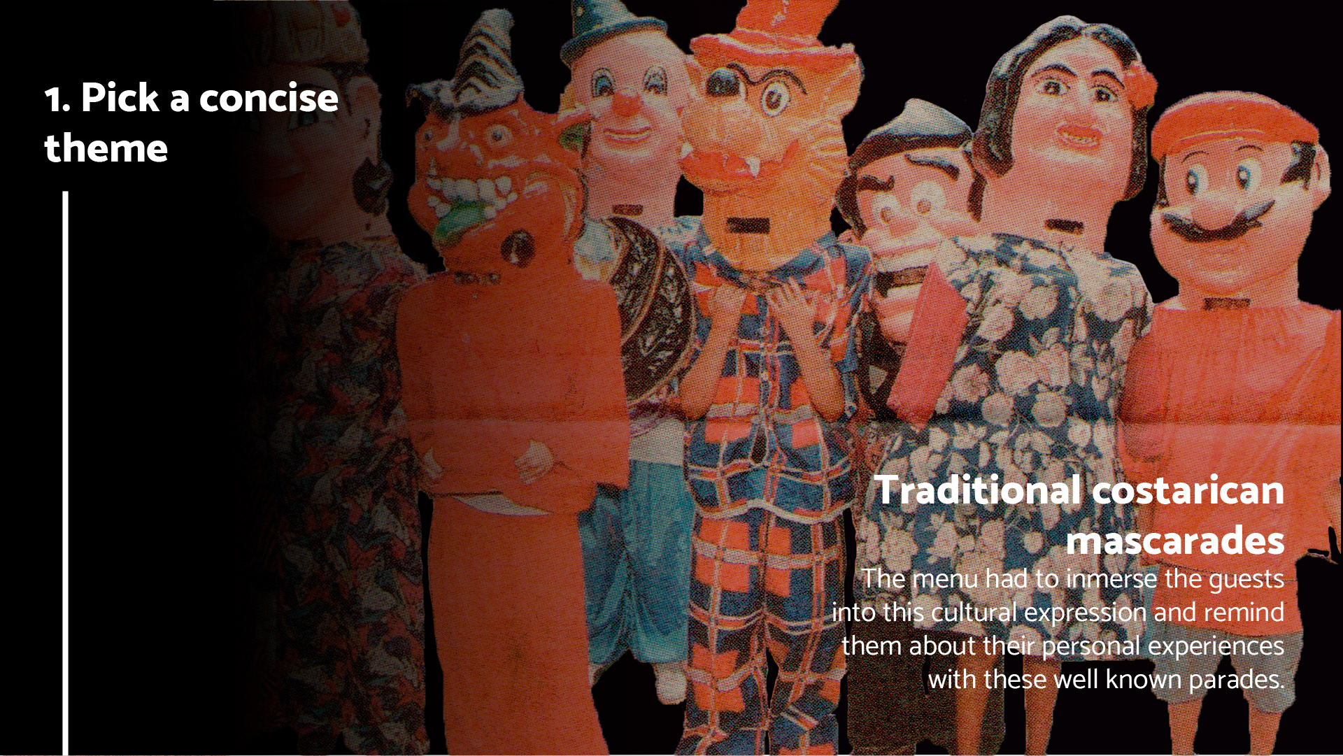 Animation segment included in a video for one of the courses of the menu. La giganta (giant woman) is one of the most popular characters in the costarican mascaradas, easy to recognize due to its tall height compared to the others.